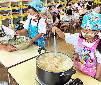 「食」への子どもの興味を引き出すきっかけのひとつに「クッキング」があります。ままごとあそびではない、本当のクッキングには「やってみたい」と、子どもの心を引きつける不思議な力があります。クッキングは調理する前の食材に触れる良い機会にもなります。また、手先をたくさん使って多様な動きを経験したり、自分たちで材料を考えて買い物に行ったりする経験もする中で、「できた!」という達成感を味わうことができます。