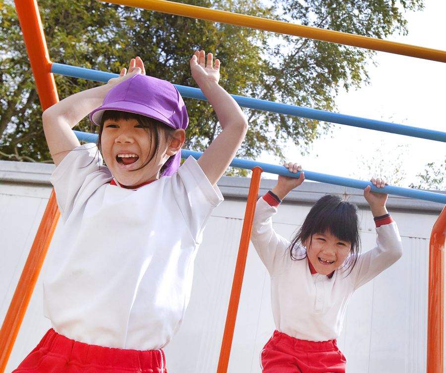子どもたちは体を動かすことが大好きです。園庭での自由遊びや、丈夫な身体づくりと体力の向上を目指して行う体育やスイミングなど、園では毎日楽しく遊びながら体を動かす時間を充分にとり、ストレスのない健やかな心と体の成長を促します。