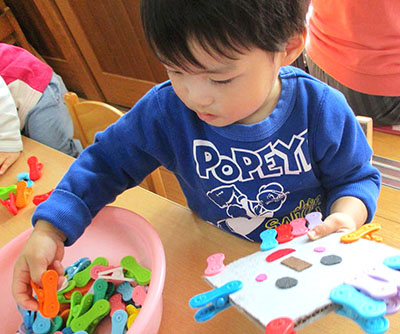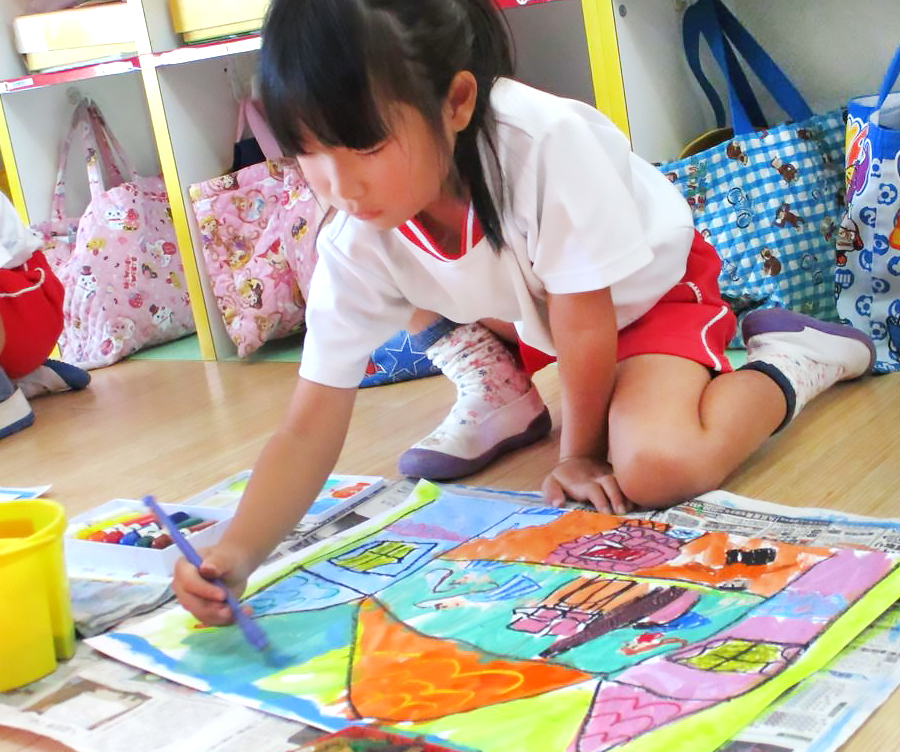 「なんだろう?」「おもしろそう。」「やってみたい!」という気持ちを大切に、絵画・製作遊び、音楽やリトミックなど、子どもたちの好奇心を掻き立て、個性を発揮できる様々な保育活動を行いながら、創造力、想像力、表現力を培っています。