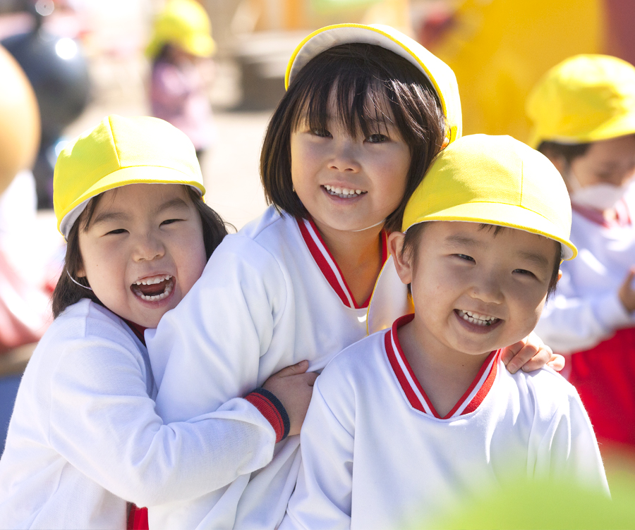 友だちと一緒に遊んだり、一つのことに力を合わせてやり遂げながら、 こどもたちは社会性や協調性を身につけていきます。毎日たくさんの友だちとのふれあいが生まれ、その中で思いやりのある優しい心が育つことを私たちはいつも願っています。
