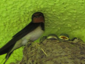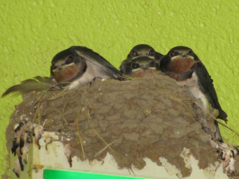 親つばめは、一生懸命餌を運んで来てはひなに食べさせ、今ではこんなに大きく成長。