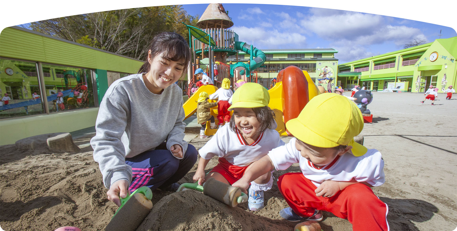 園には幅広い年代の職員が勤めていて頼れる先輩も大勢います。また育休を取って復帰してくる職員も多いです。新卒の方、未経験の方、子育てが落ち着いて時間ができた方も大歓迎!かわいい子どもたちが待っています。ぜひ一緒に働きませんか。お待ちしています。