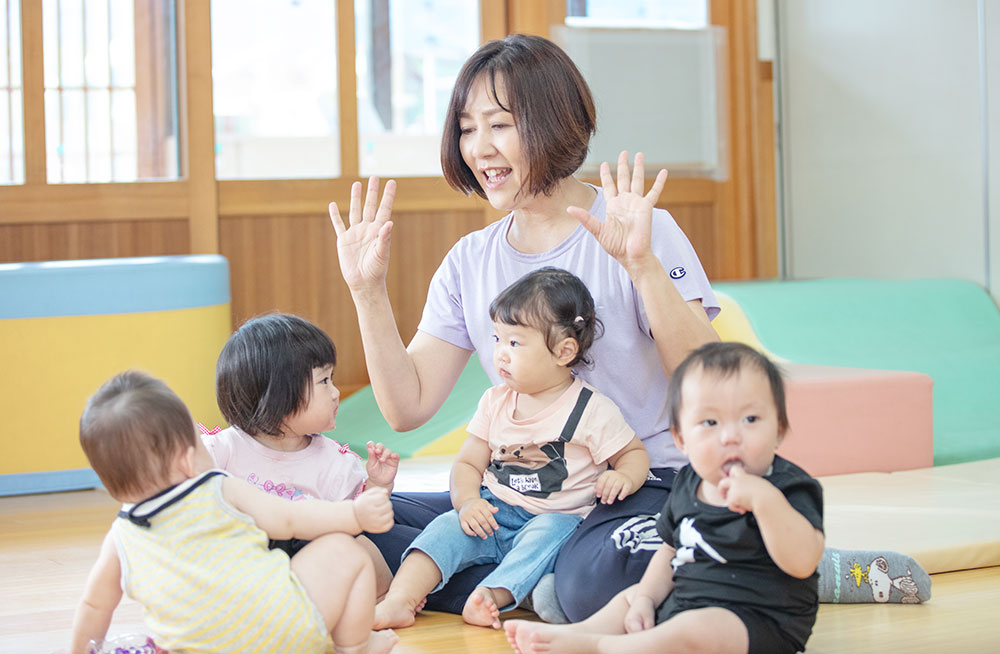 0、1、2歳は育児担当制で、一人一人に向き合い情緒の安定を図ったり、子どもが見通しを持てるような関わりをしながら、主体性を育んでいきます。